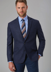 Slim fit, 2 button front, centre vent, 2 flap pockets, welt chest pocket, 2 internal pockets, notch lapel.